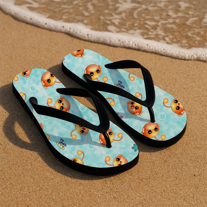 Anglerfish Flip Flops Blue Ocean Digitally Drawn Pattern