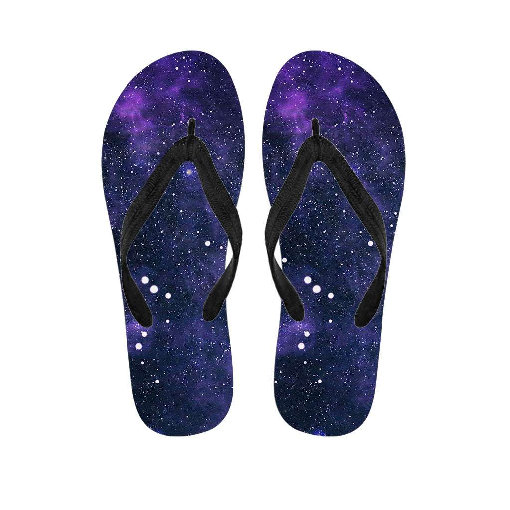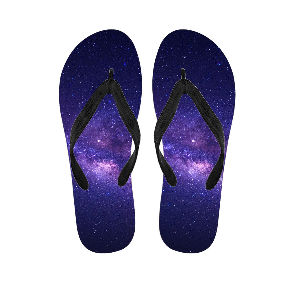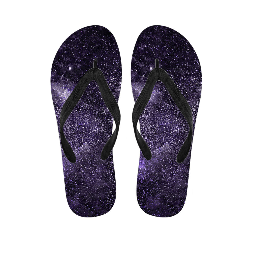 Dark Purple Galaxy Outer Space Print Flip Flops For Men Women