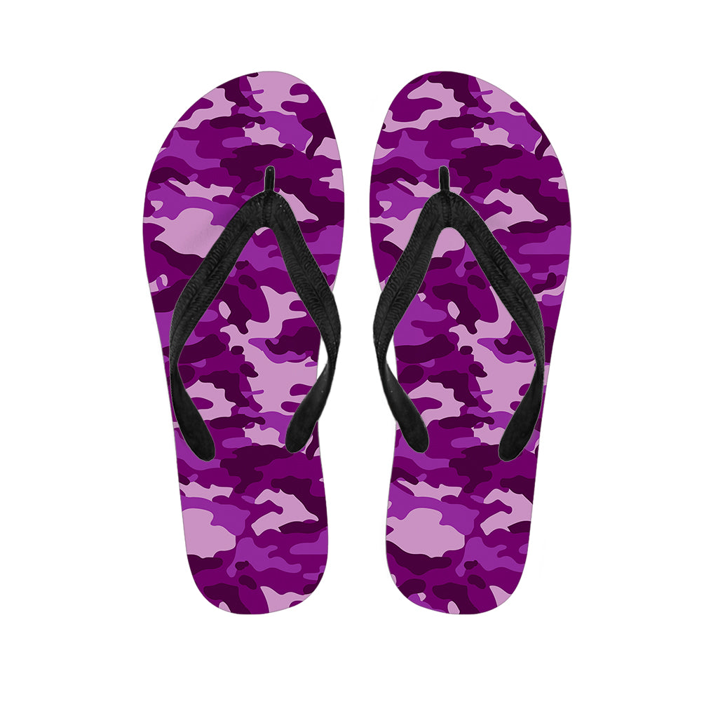 Dark Purple Camouflage Print Flip Flops For Men Women