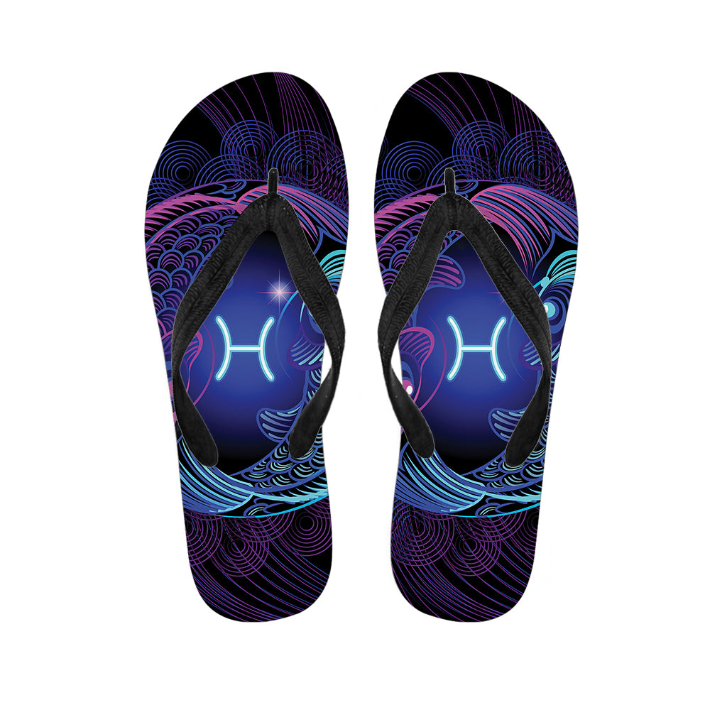 Dark Pisces Zodiac Sign Print Flip Flops For Men Women