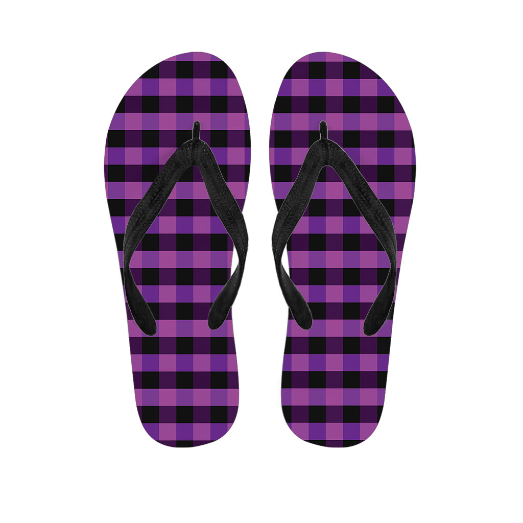 Dark Purple Check Pattern Print Flip Flops For Men Women