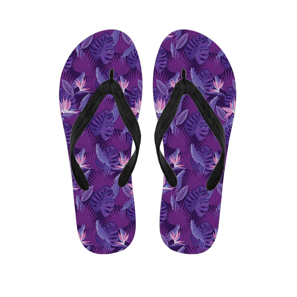 Dark Purple Hawaiian Tropical Print Flip Flops For Men Women