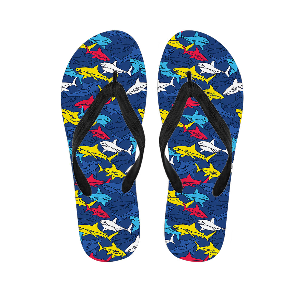 Doodle Shark Pattern Print Flip Flops For Men Women