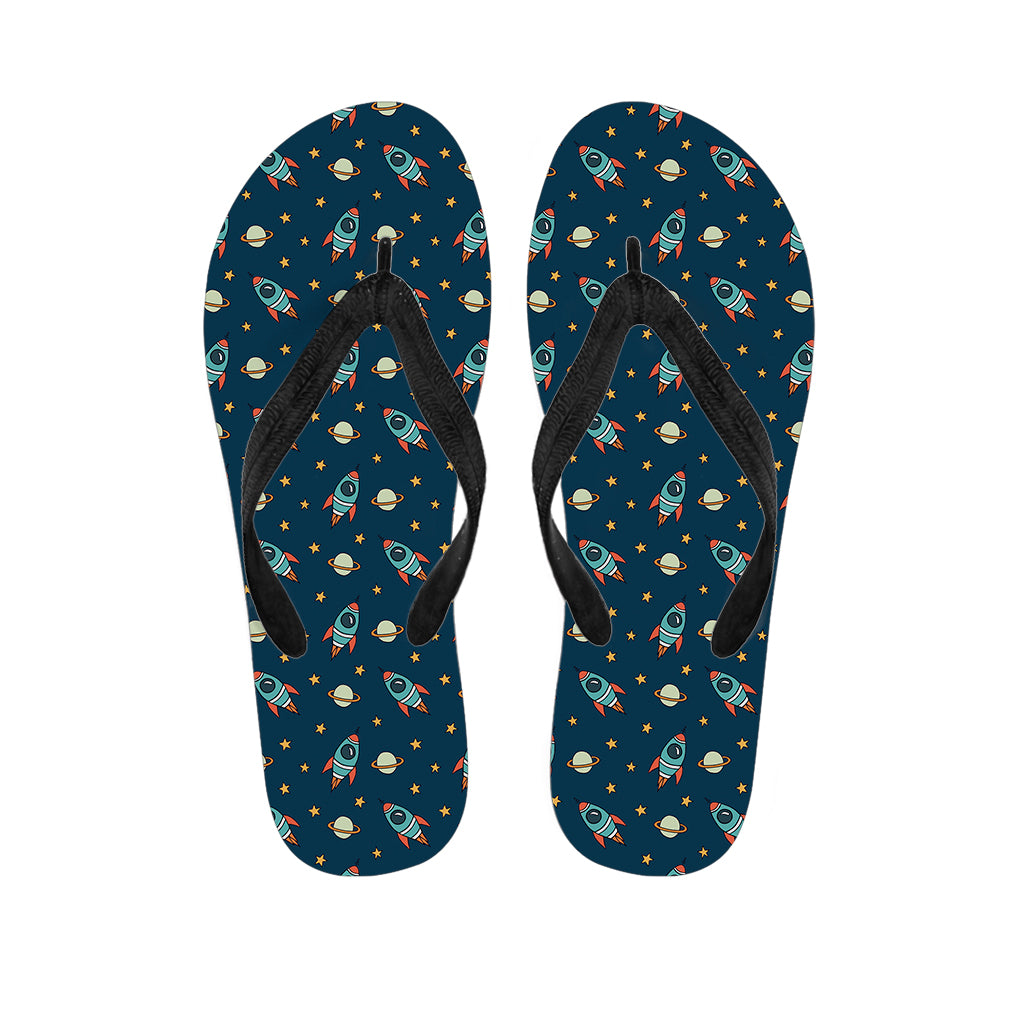 Doodle Rocket Pattern Print Flip Flops For Men Women