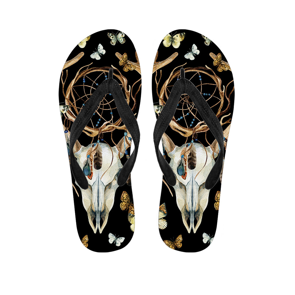 Dreamcatcher Deer Skull Print Flip Flops For Men Women