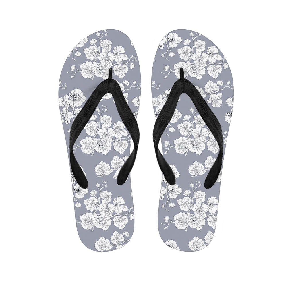 Drawing Orchid Pattern Print Flip Flops For Men Women