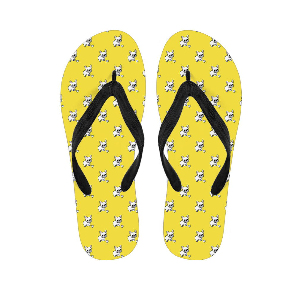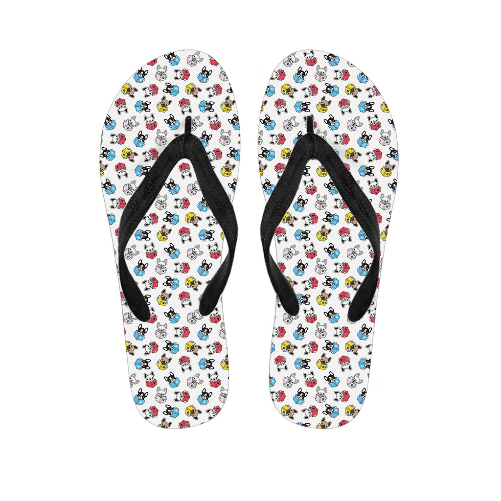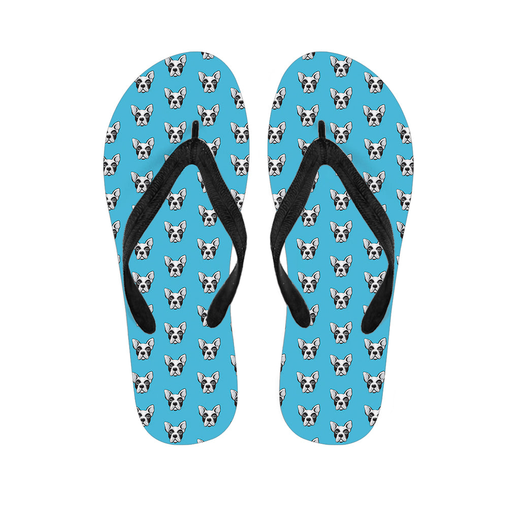French Bulldog Faces Pattern Print Flip Flops For Men Women