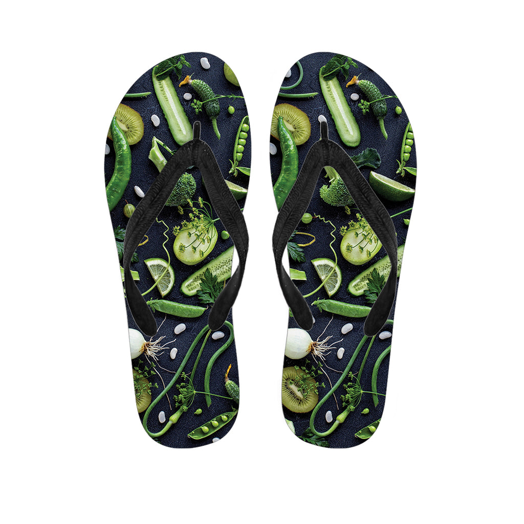Fresh Green Fruit And Vegetables Print Flip Flops For Men Women