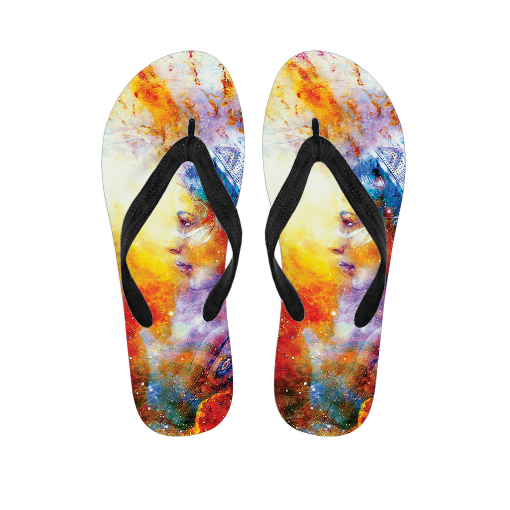 Galaxy Native Indian Woman Print Flip Flops For Men Women