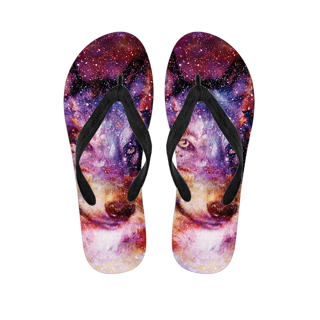 Galaxy Wolf Portrait Print Flip Flops For Men Women