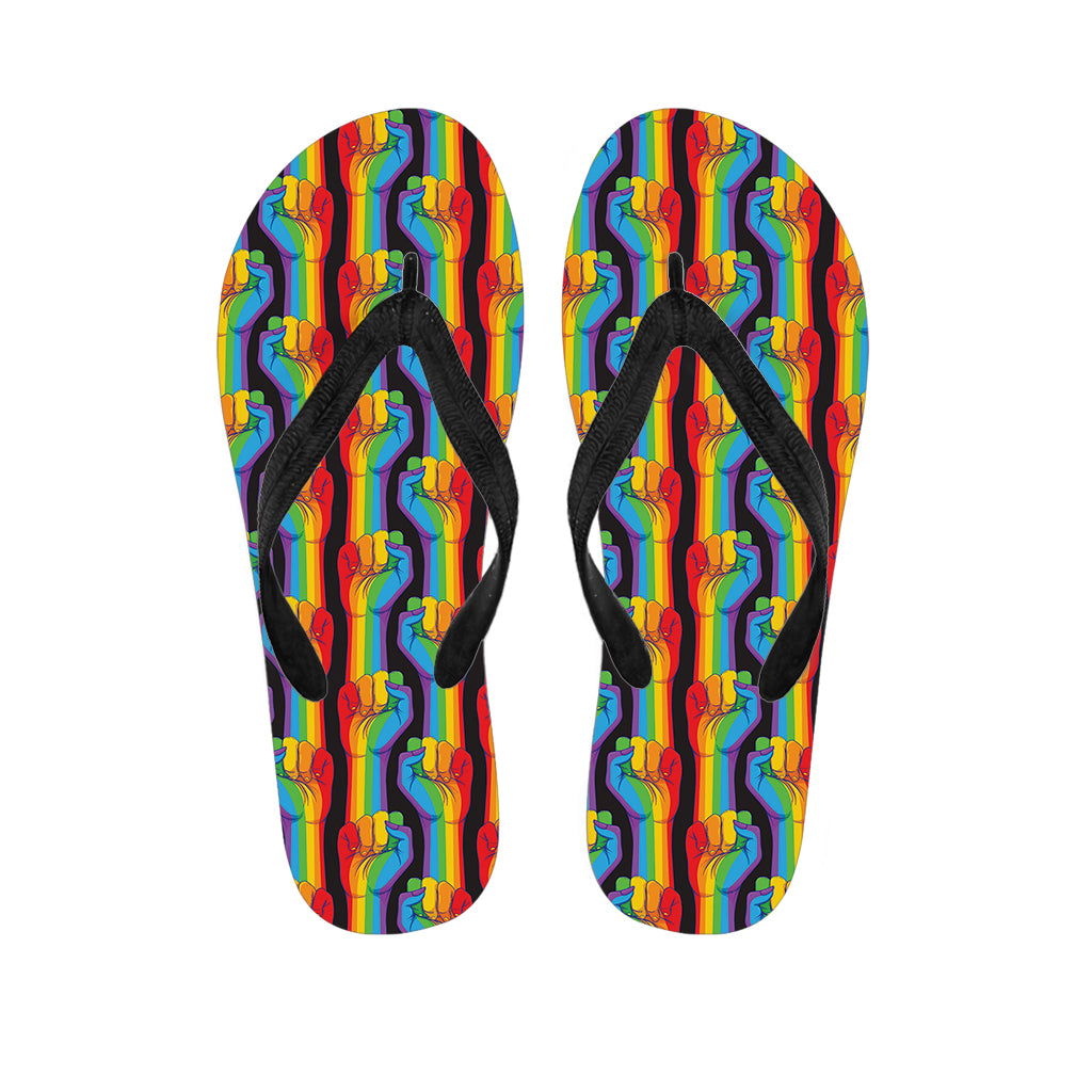 Gay Pride Hand Sign Pattern Print Flip Flops For Men Women