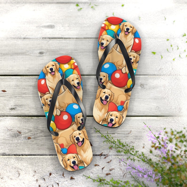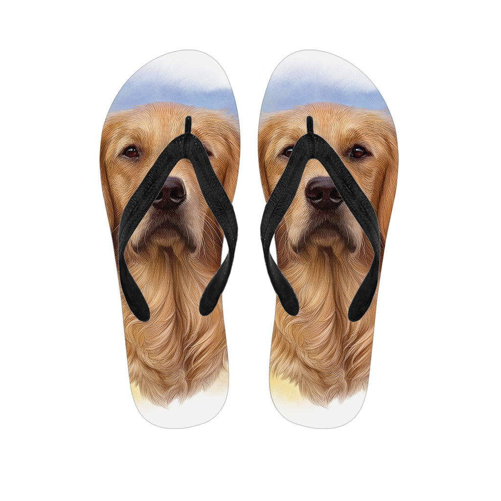 Golden Retriever Portrait Print Flip Flops For Men Women