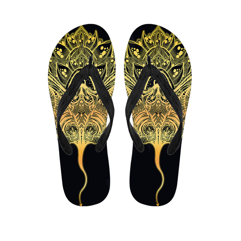Golden Spiritual Lotus Print Flip Flops For Men Women