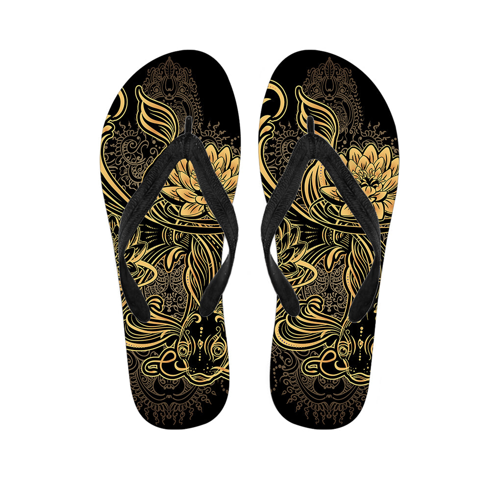 Golden Spiritual Koi Fish Print Flip Flops For Men Women
