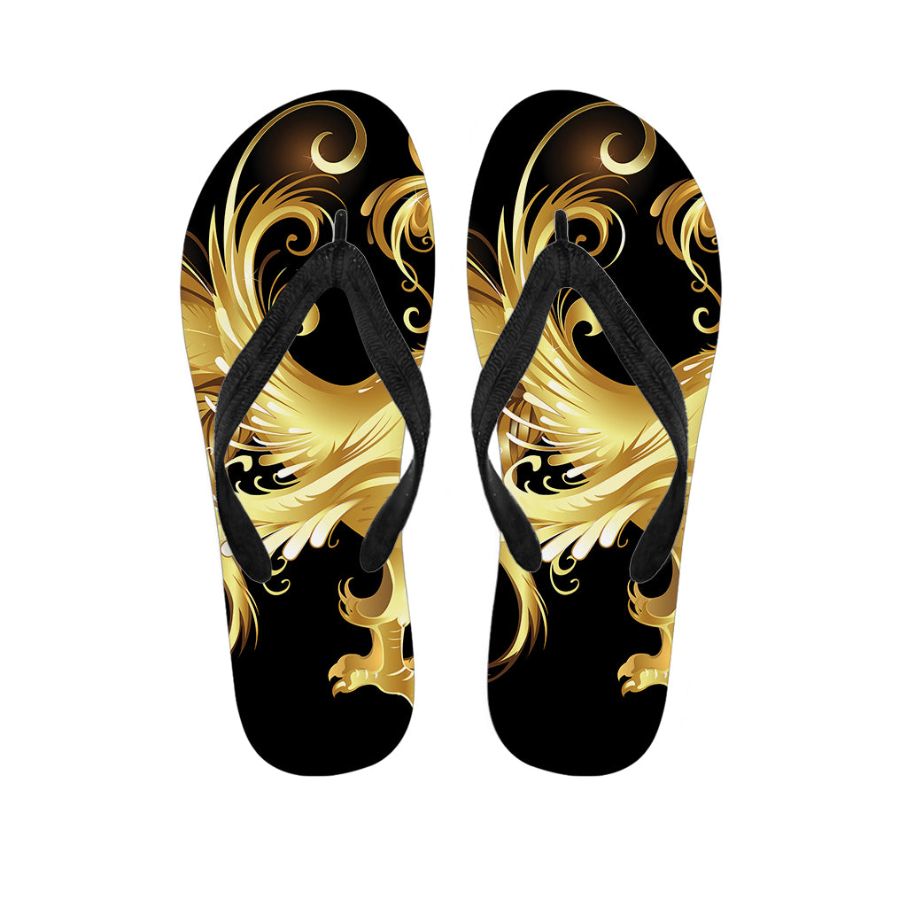 Golden Spiritual Bird Print Flip Flops For Men Women