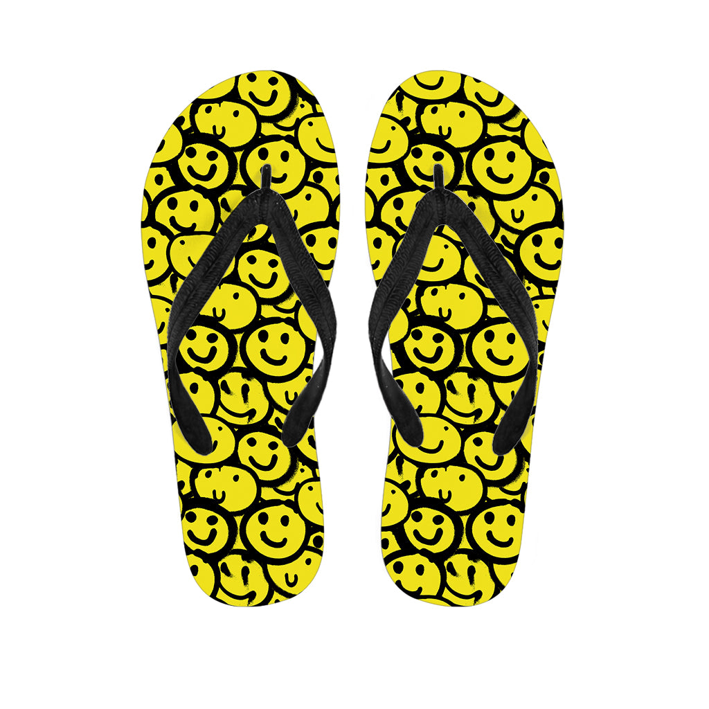 Graffiti Happy Emoji Pattern Print Flip Flops For Men Women