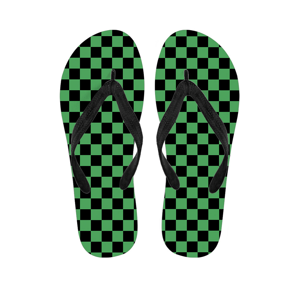 Green And Black Checkered Pattern Print Flip Flops For Men Women