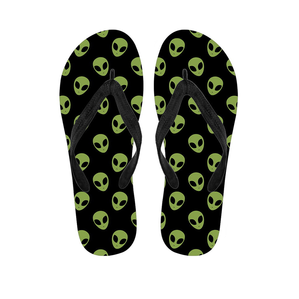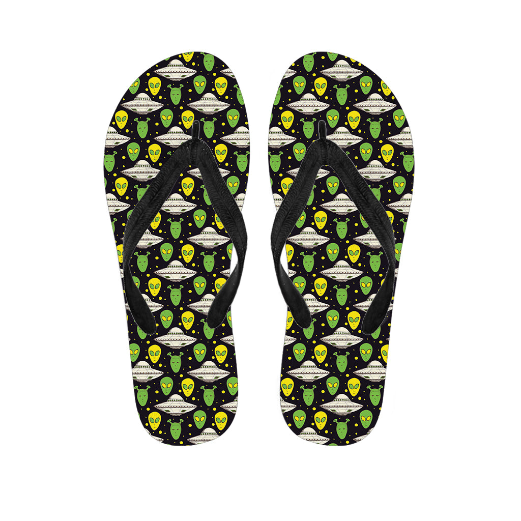 Green Alien Ufo Space Print Flip Flops For Men Women