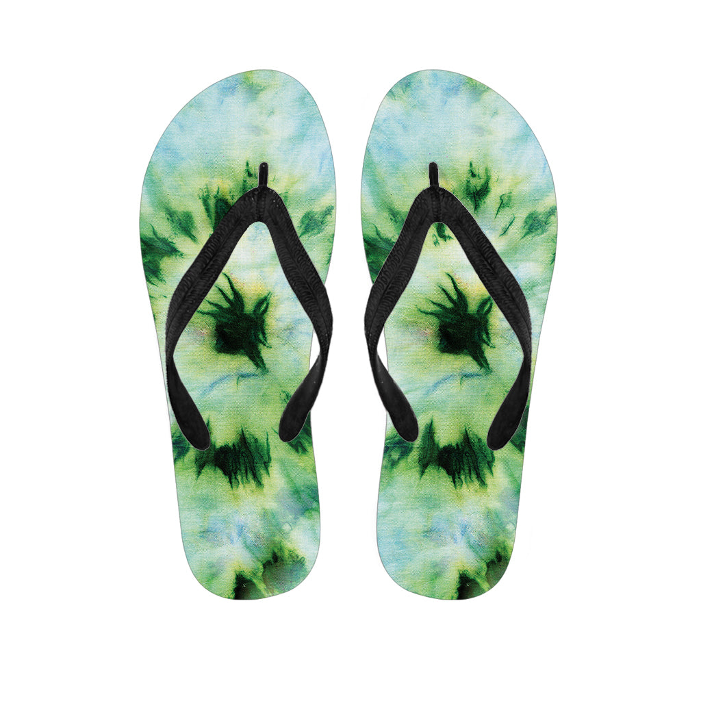 Green And Black Acid Wash Tie Dye Print Flip Flops For Men Women