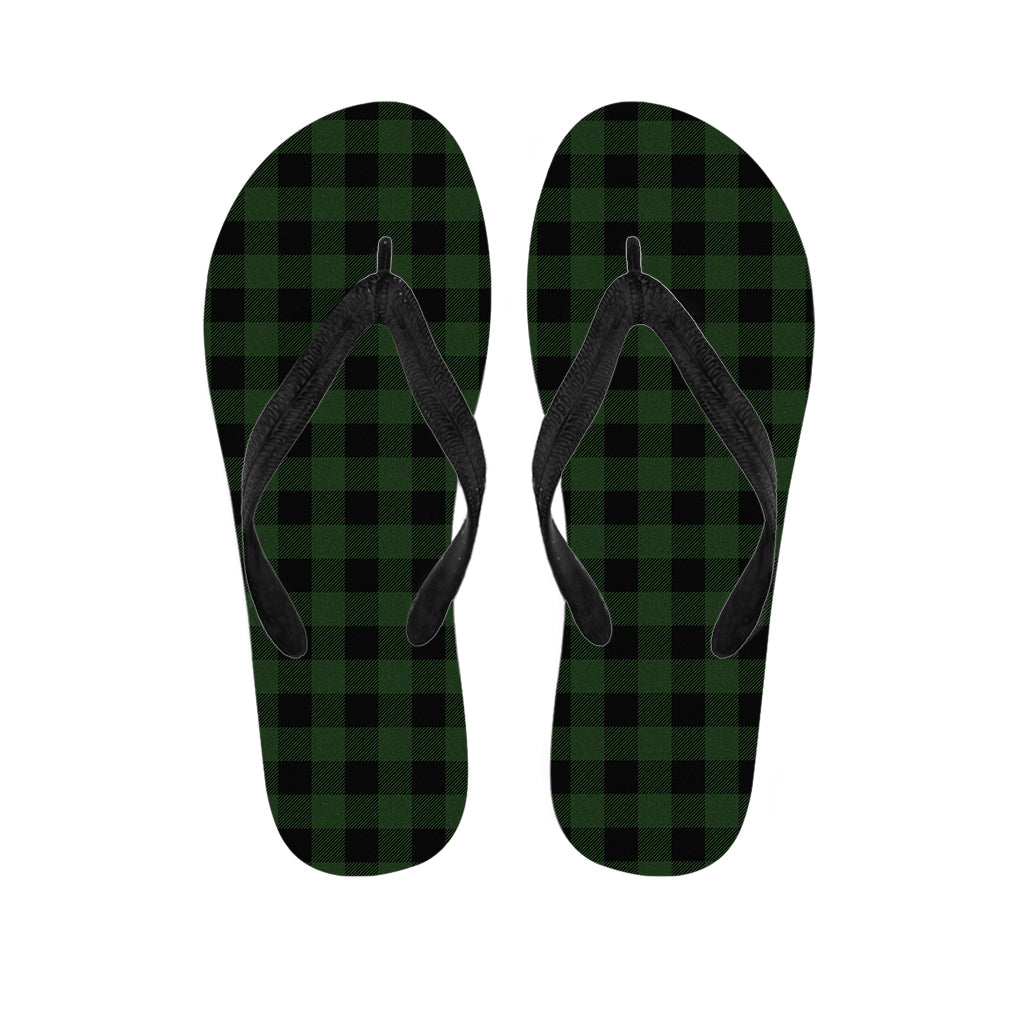Green And Black Buffalo Plaid Print Flip Flops For Men Women