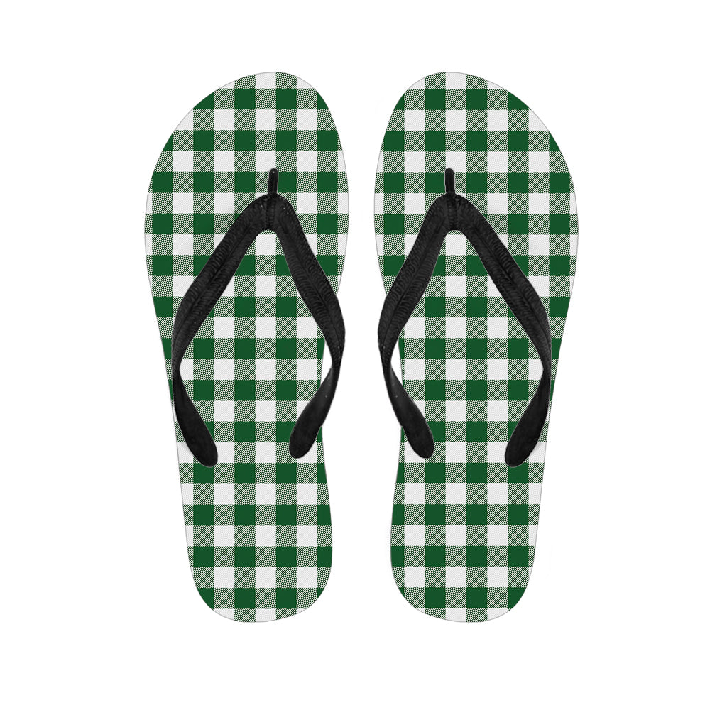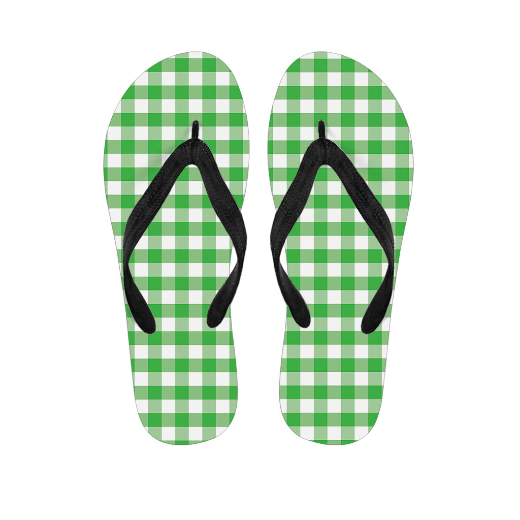 Green And White Buffalo Check Print Flip Flops For Men Women