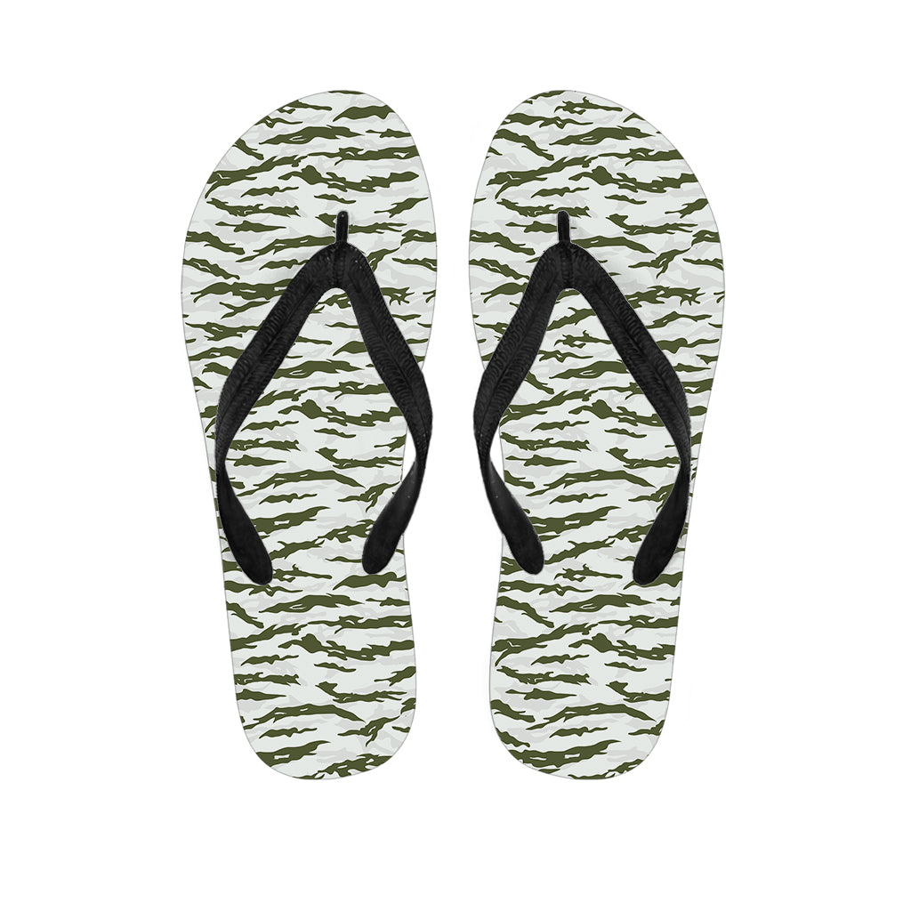 Green And White Tiger Stripe Camo Print Flip Flops For Men Women