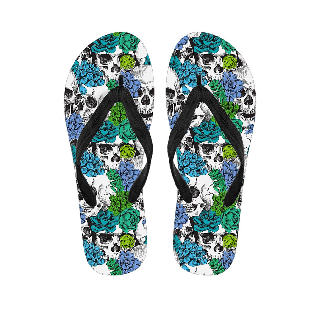 Green Blue Flowers Skull Pattern Print Flip Flops For Men Women