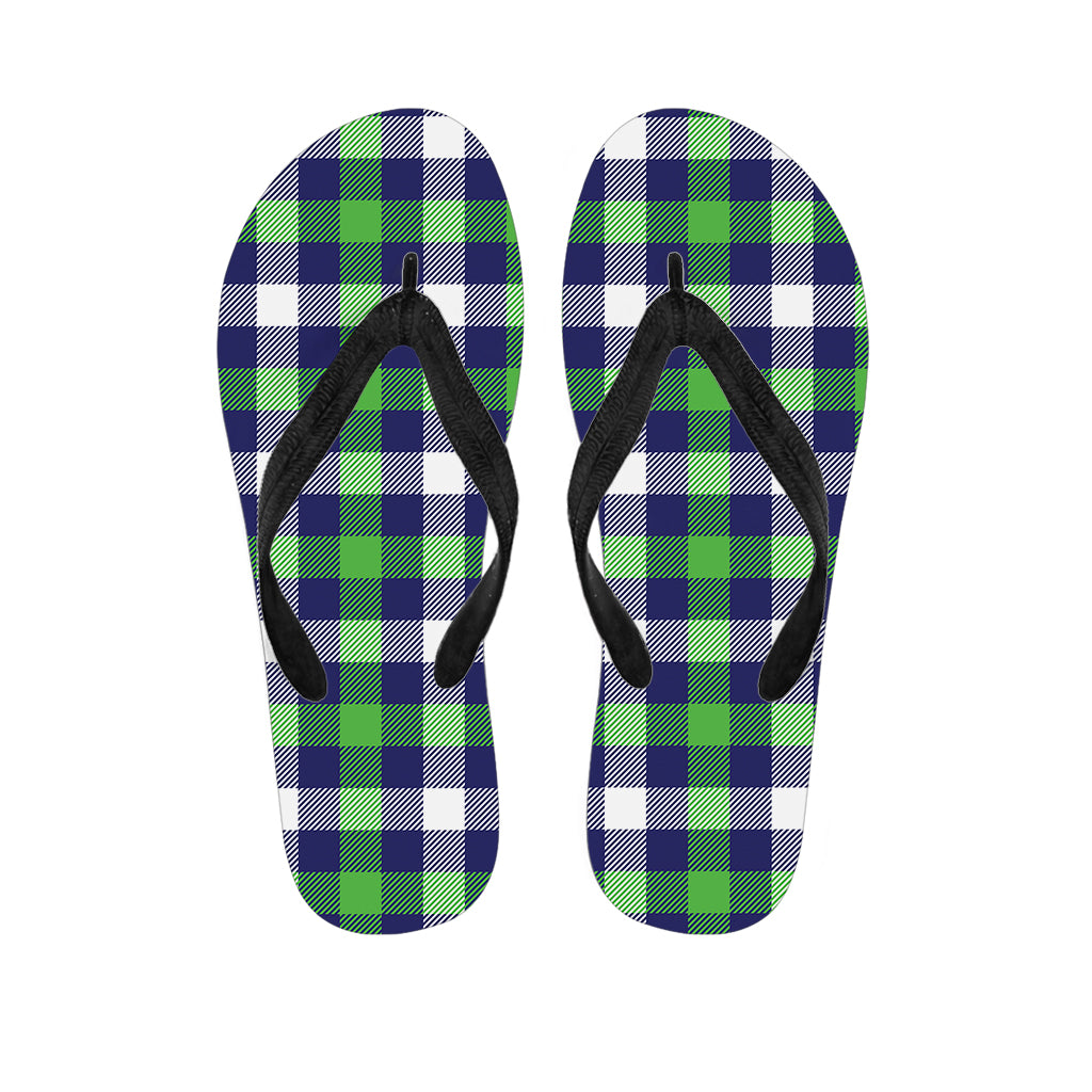 Green Blue And White Buffalo Plaid Print Flip Flops For Men Women