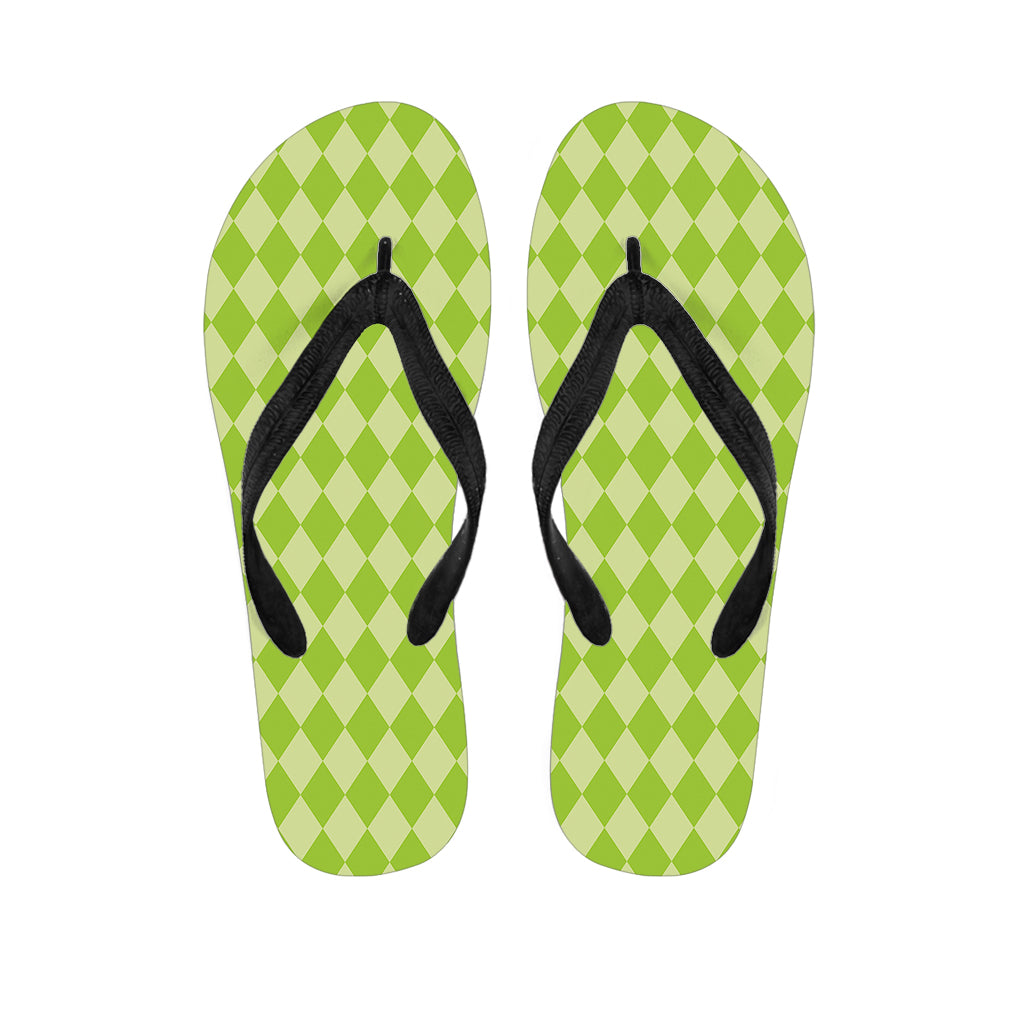 Green Harlequin Pattern Print Flip Flops For Men Women