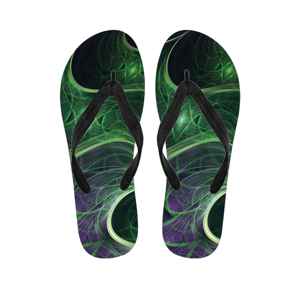 Green Fractal Print Flip Flops For Men Women