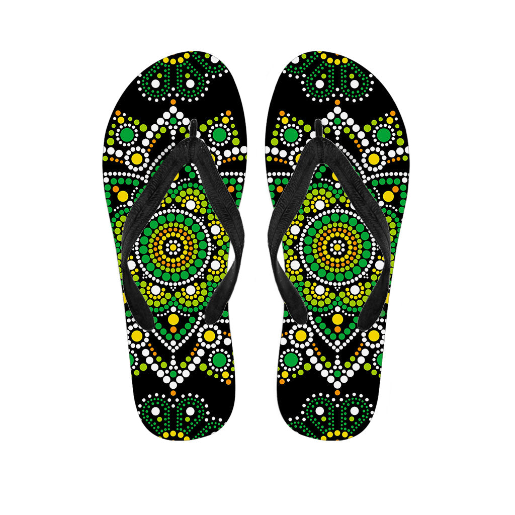 Green White Dot Mandala Print Flip Flops For Men Women