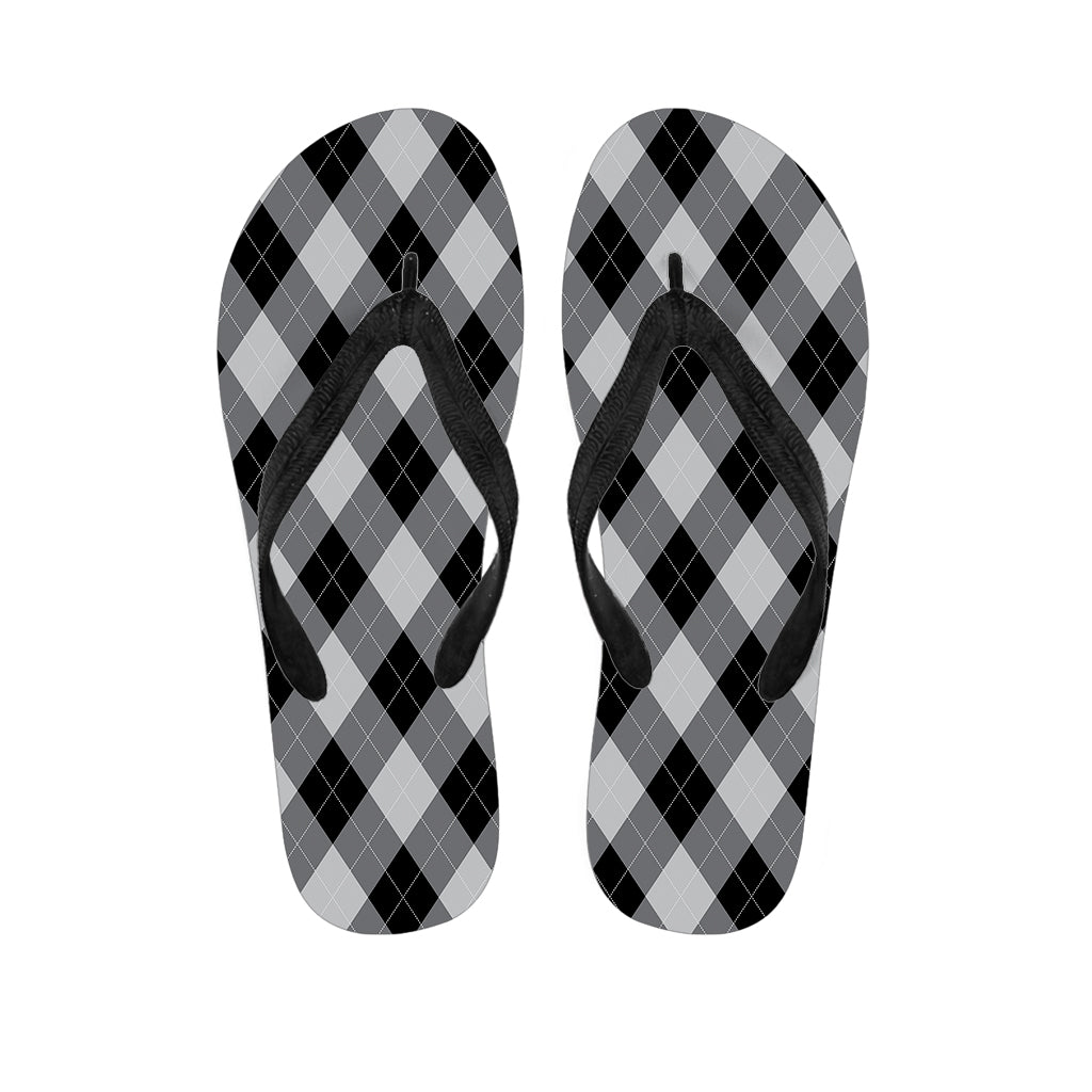 Grey And Black Argyle Pattern Print Flip Flops For Men Women