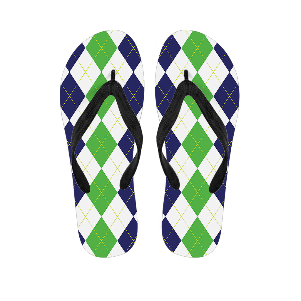 Green White And Navy Argyle Print Flip Flops For Men Women