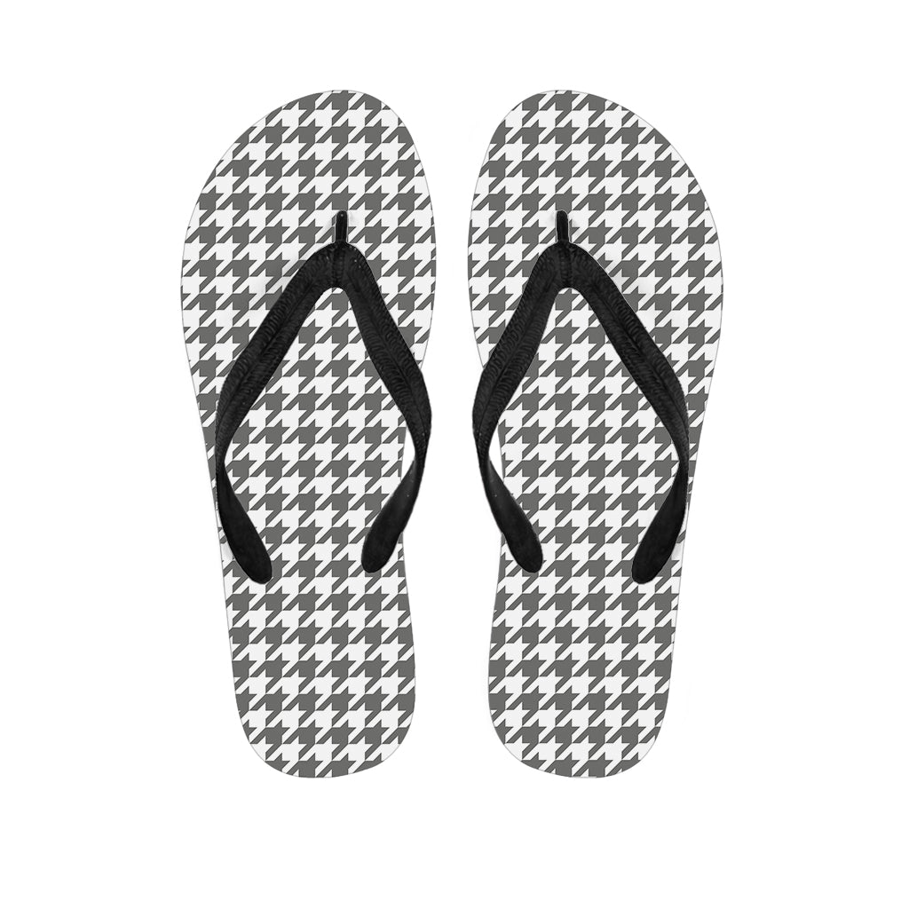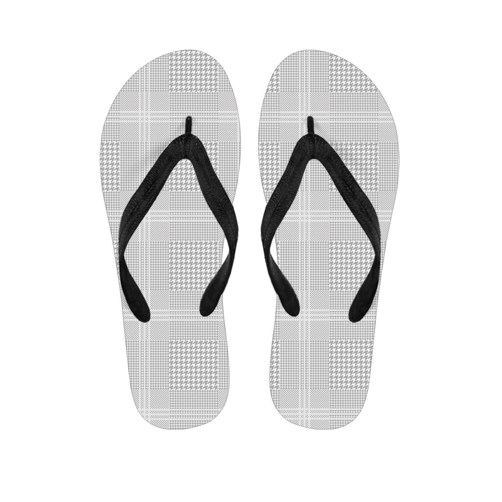 Grey And White Houndstooth Pattern Print Flip Flops For Men Women
