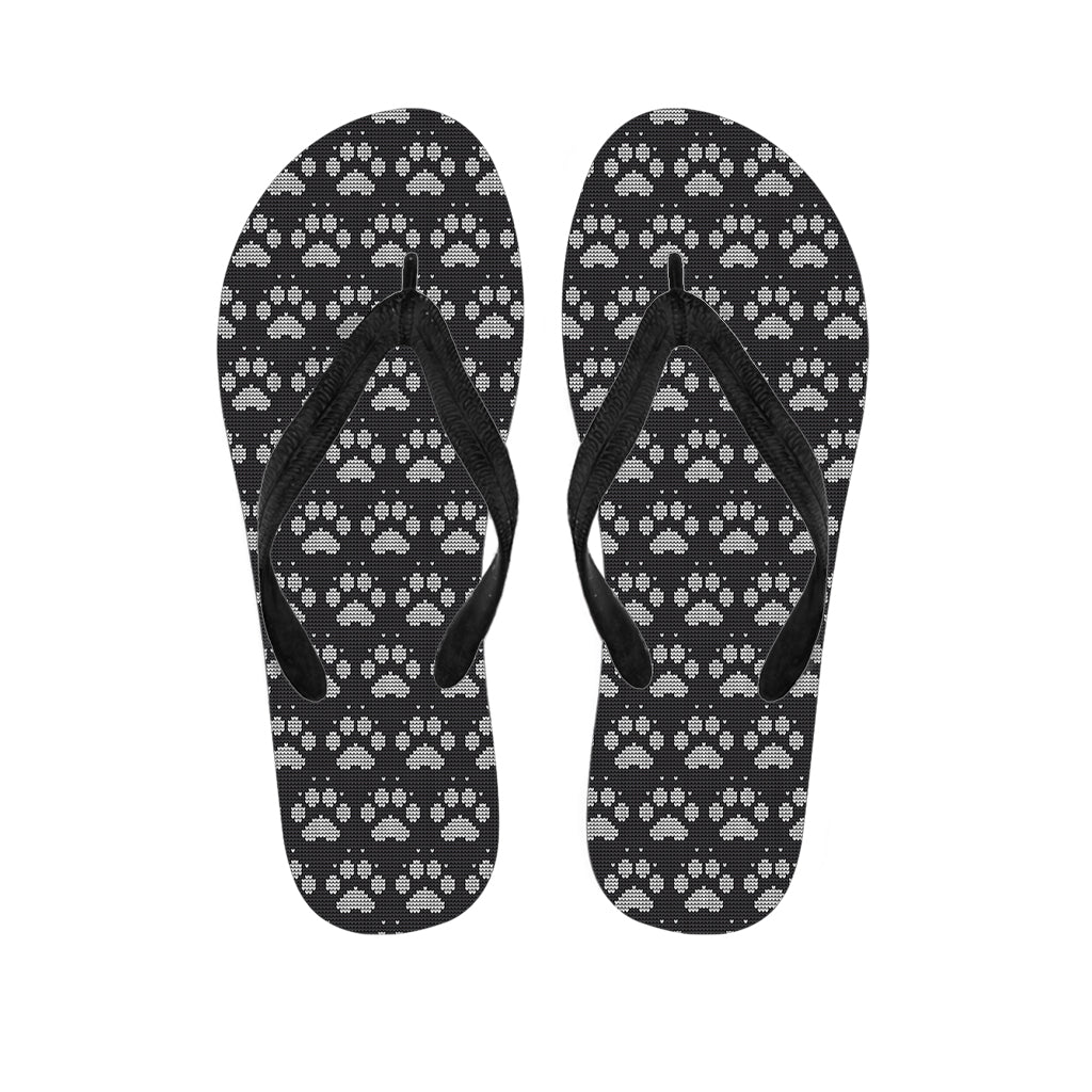 Grey And White Paw Knitted Pattern Print Flip Flops For Men Women