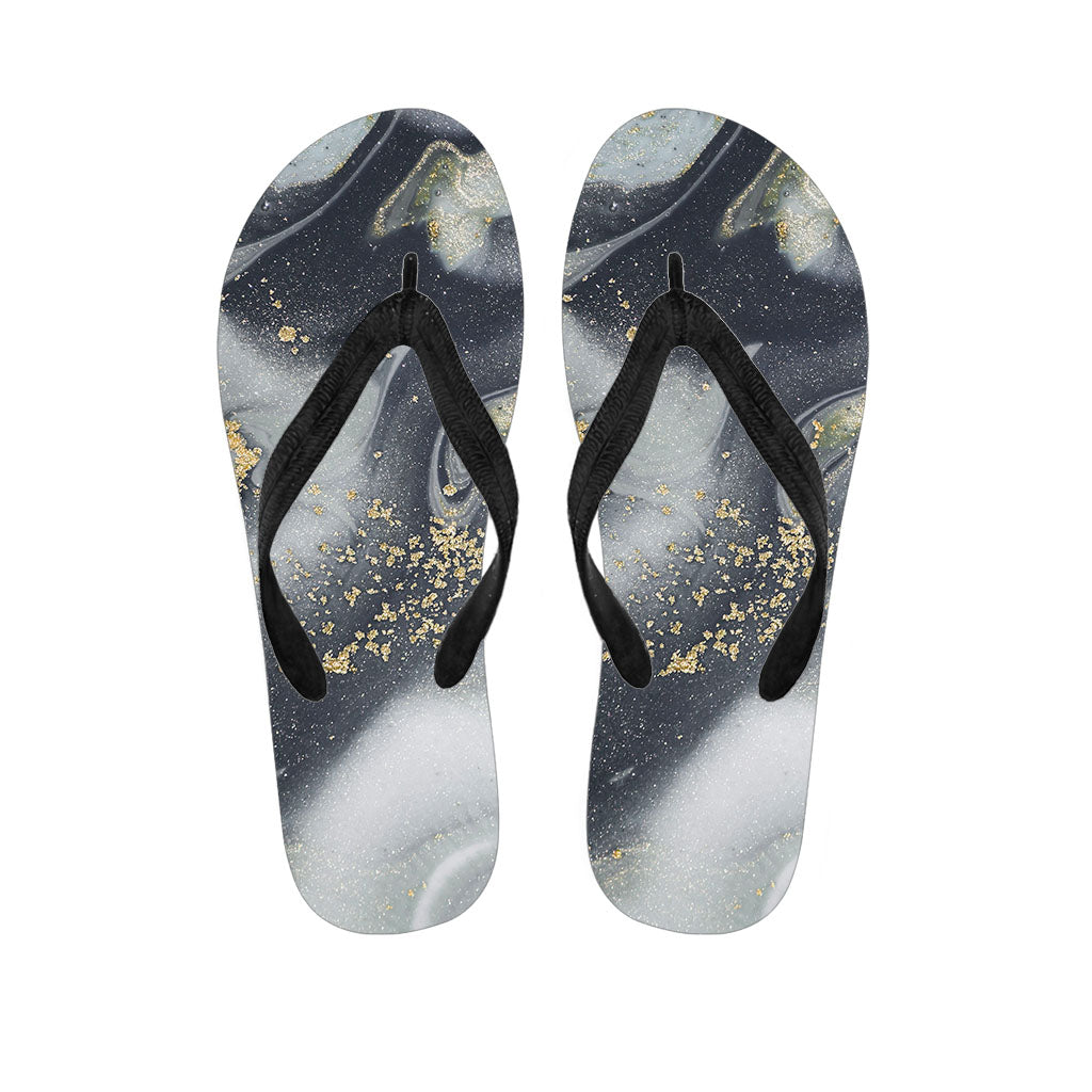 Grey Gold Liquid Marble Print Flip Flops For Men Women