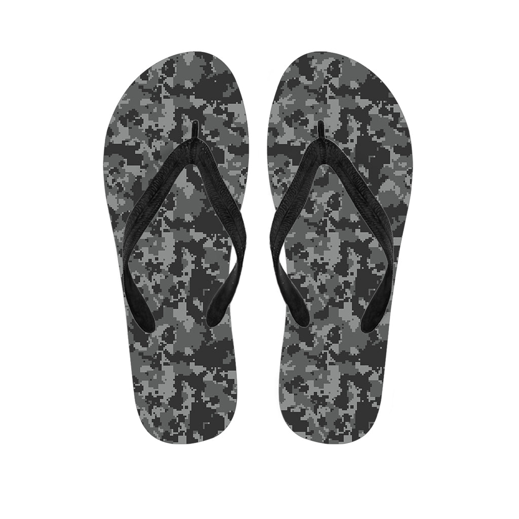 Grey Digital Camo Pattern Print Flip Flops For Men Women