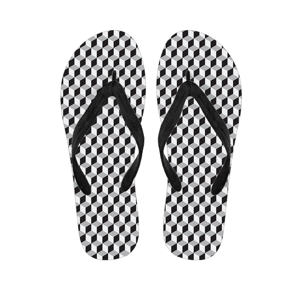 Grey Geometric Cube Shape Pattern Print Flip Flops For Men Women