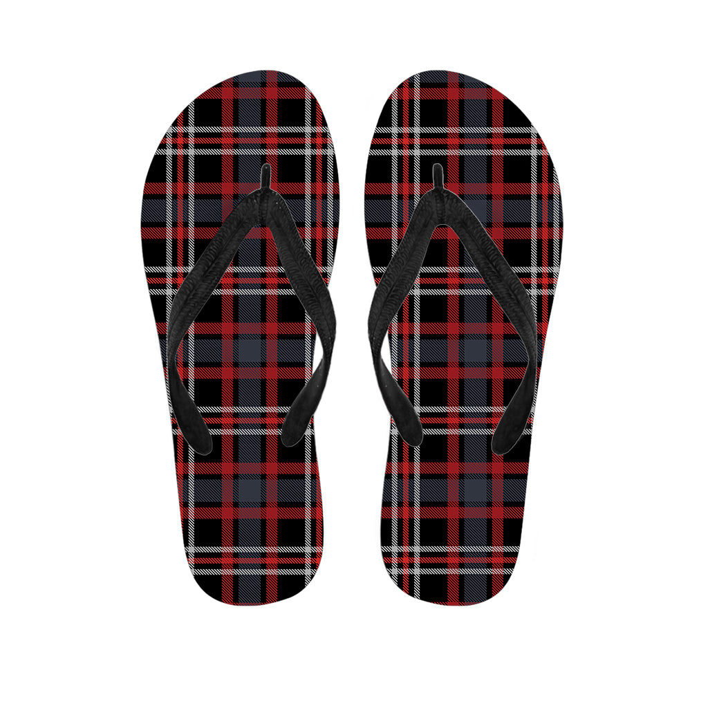Grey Black And Red Scottish Plaid Print Flip Flops For Men Women