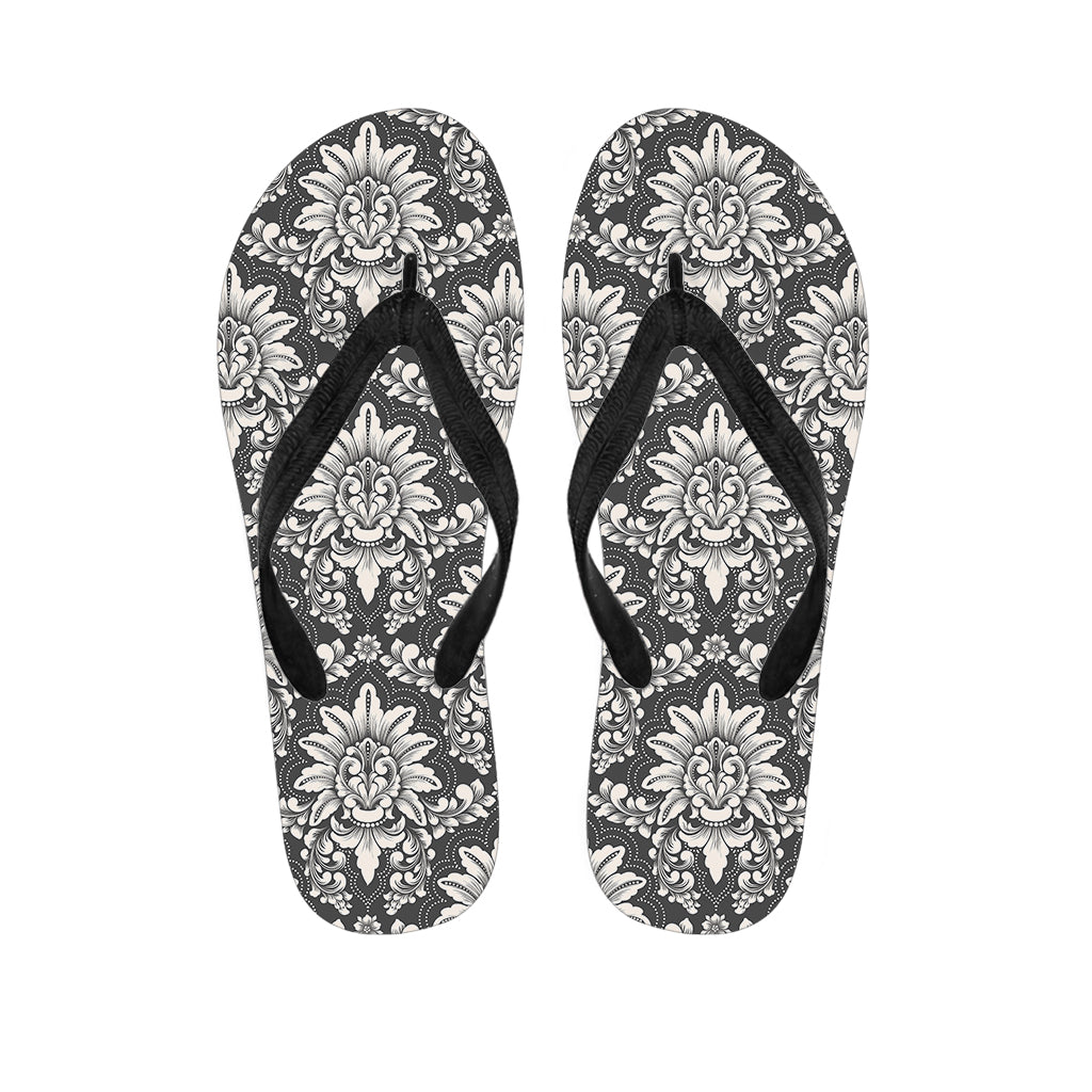Grey Daisy Floral Pattern Print Flip Flops For Men Women