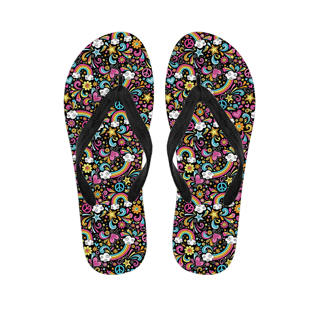 Groovy Girly Peace Pattern Print Flip Flops For Men Women