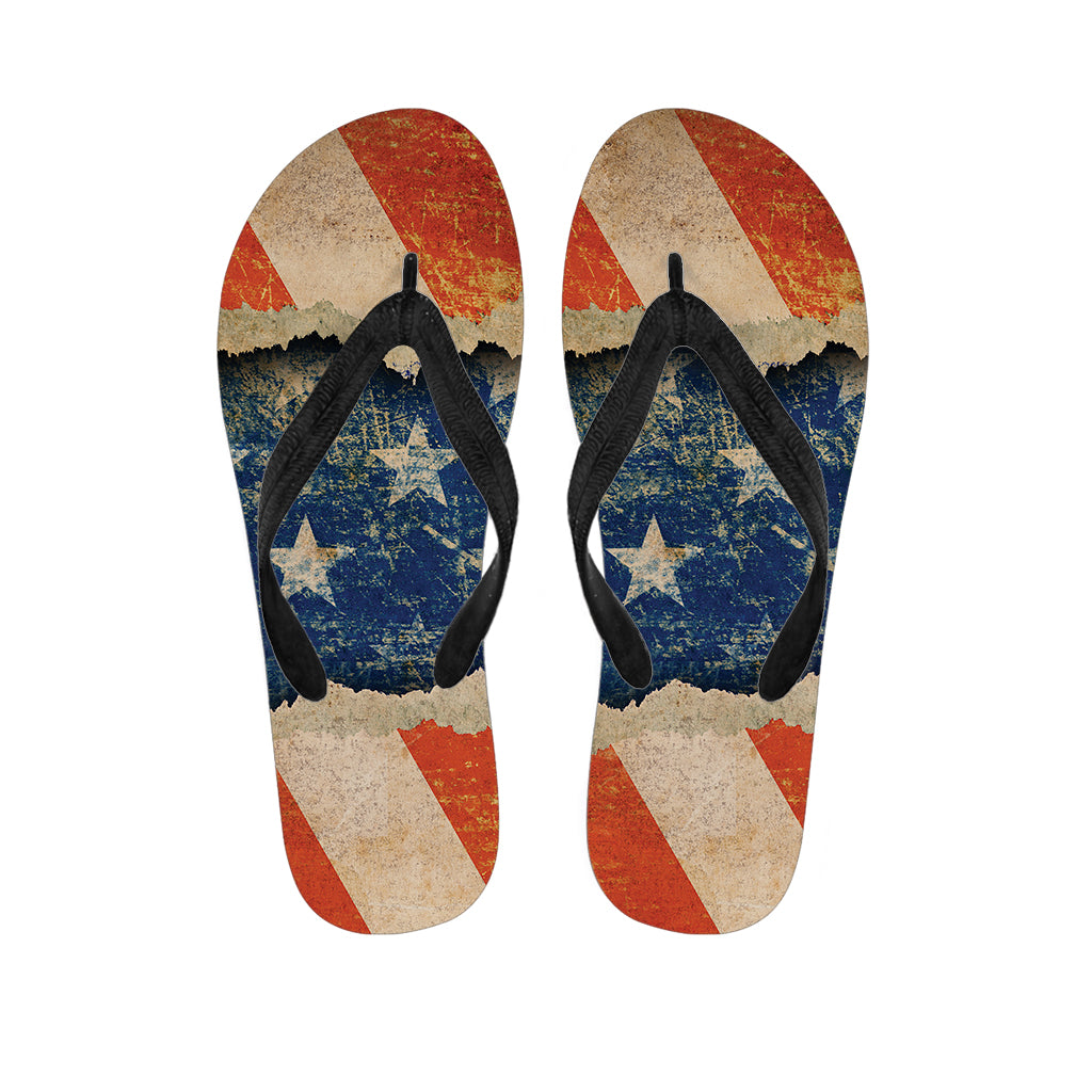 Grunge Ripped Paper American Flag Print Flip Flops For Men Women
