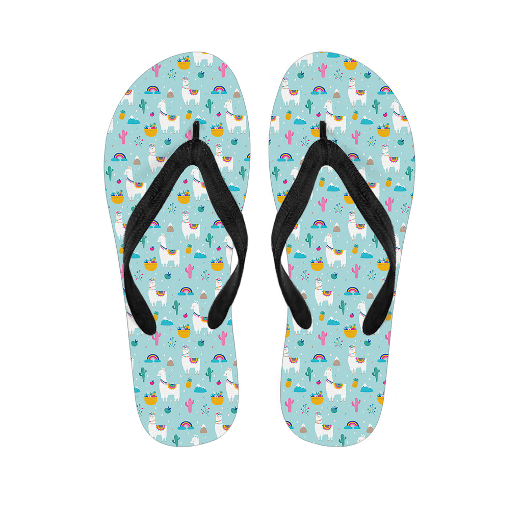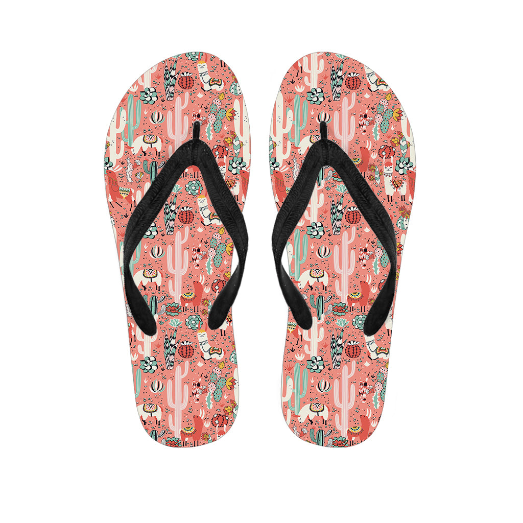 Happy Llama And Cactus Pattern Print Flip Flops For Men Women
