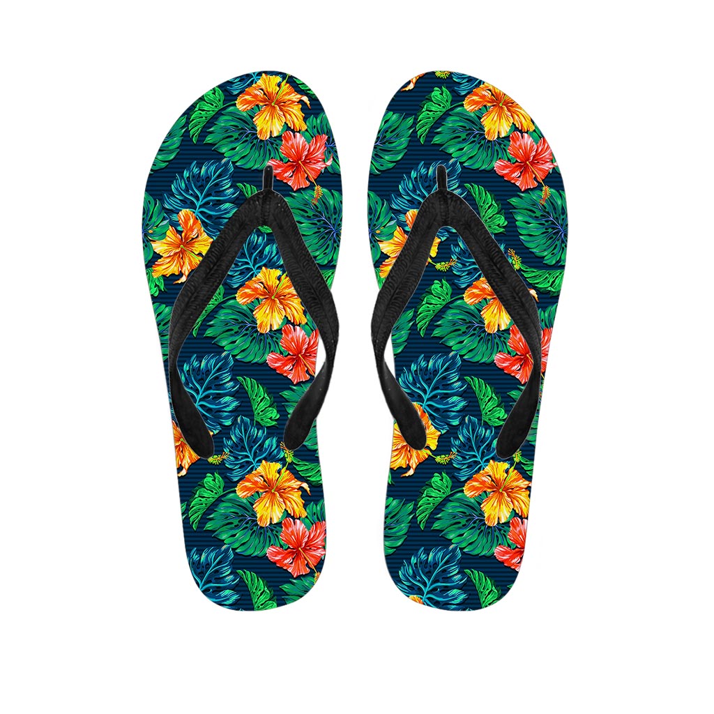 Hibiscus Monstera Hawaii Pattern Print Flip Flops For Men Women
