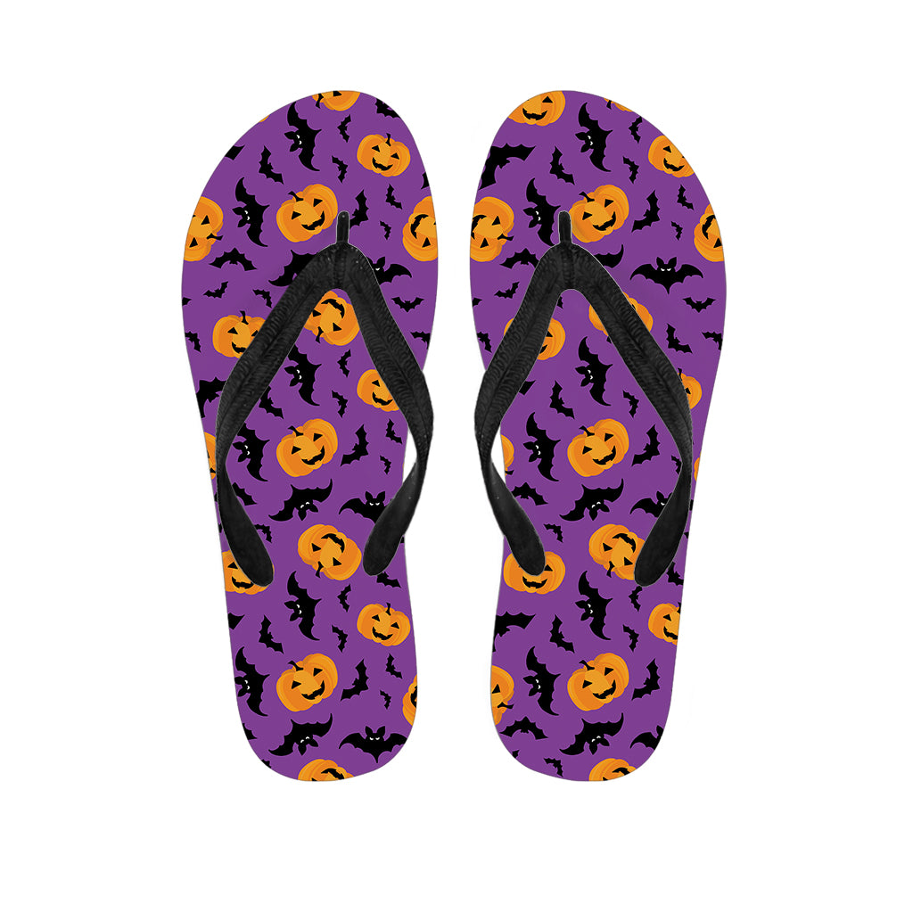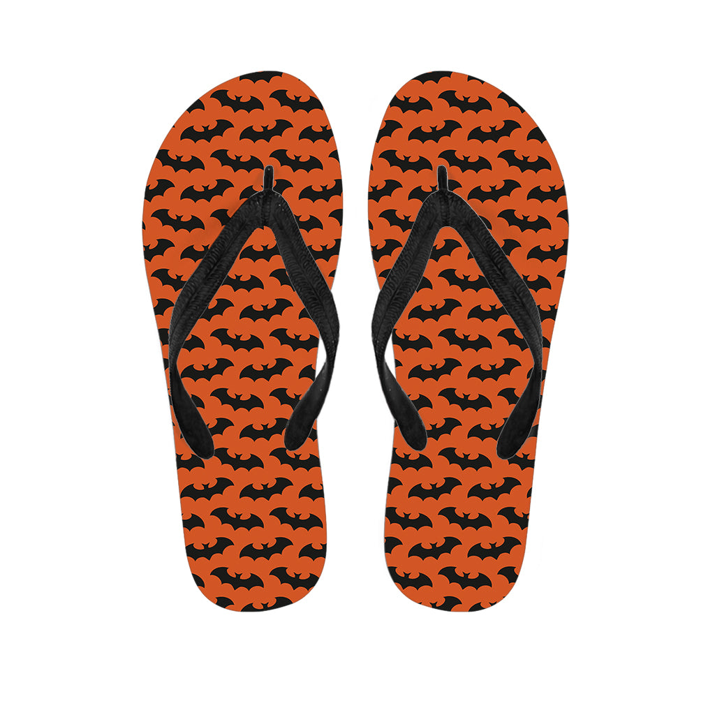 Bat And Pumpkin Pattern Print Flip Flops For Men Women