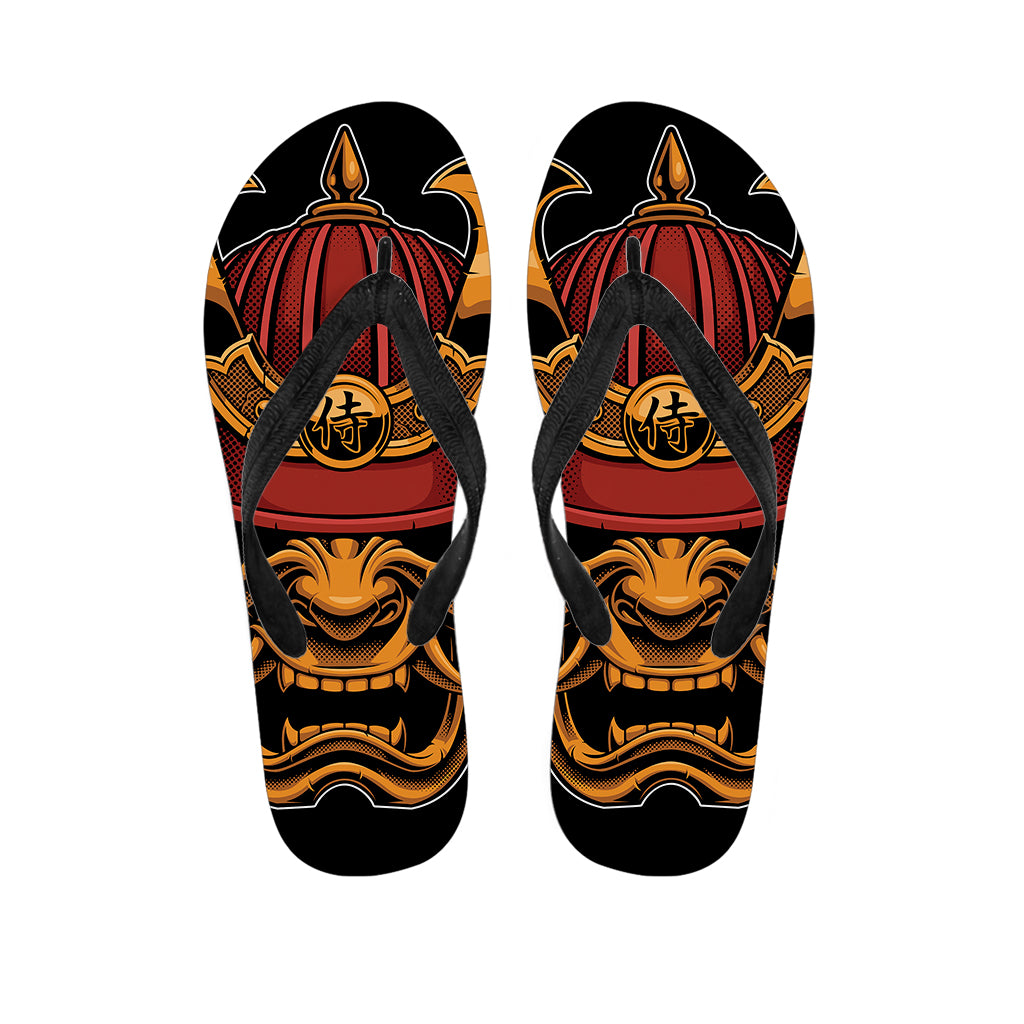 Japanese Warrior Mask Print Flip Flops For Men Women