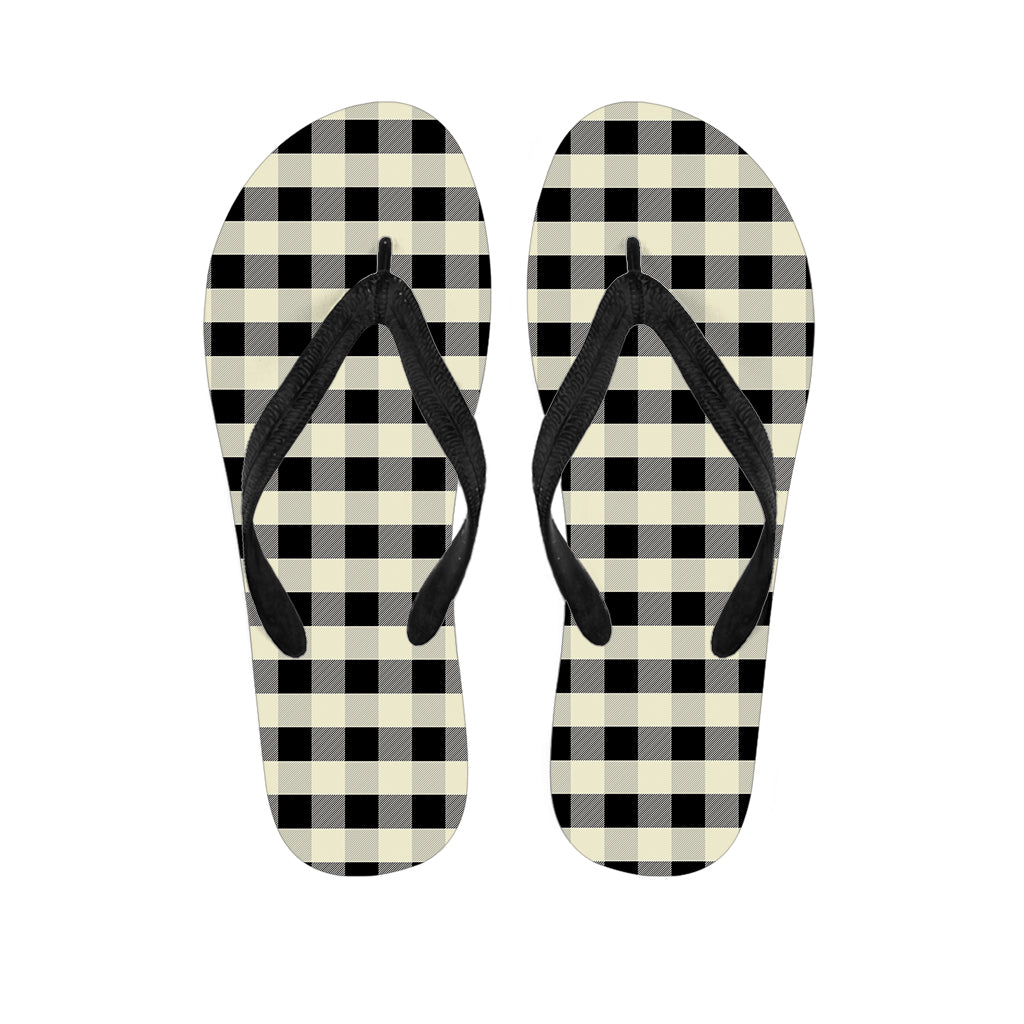 Beige And Black Buffalo Check Print Flip Flops For Men Women