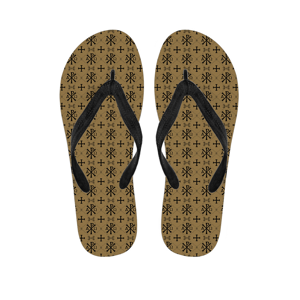 Beige And Black Orthodox Pattern Print Flip Flops For Men Women