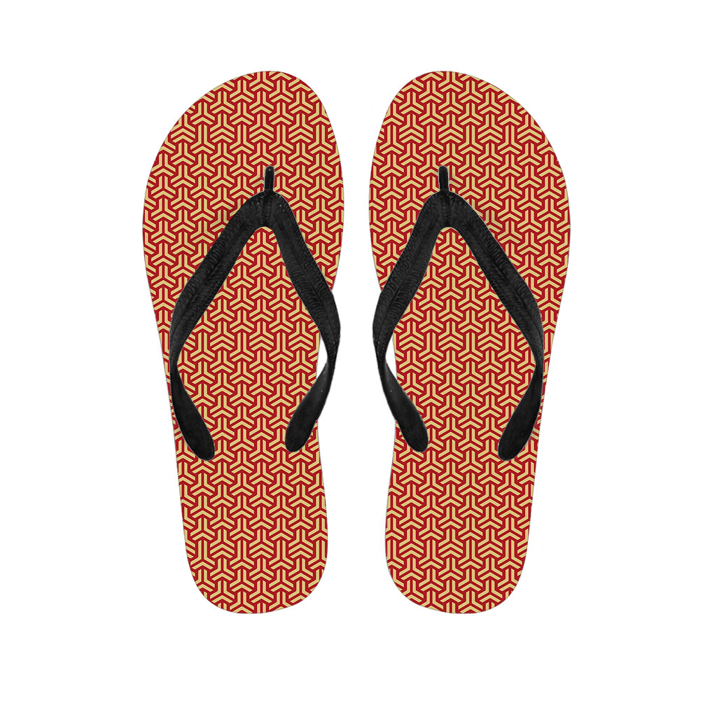 Beige And Red Japanese Pattern Print Flip Flops For Men Women