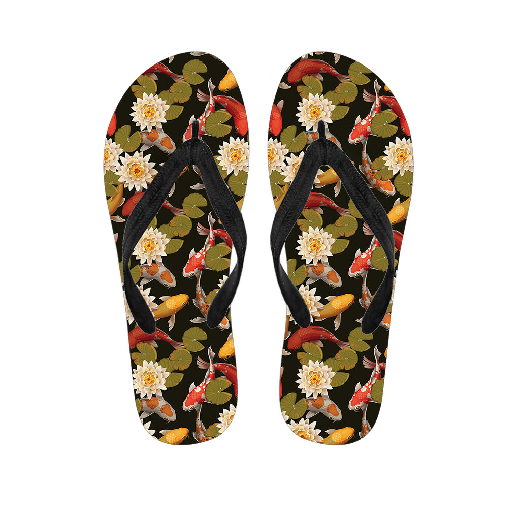 Koi Carp And Lotus Pattern Print Flip Flops For Men Women